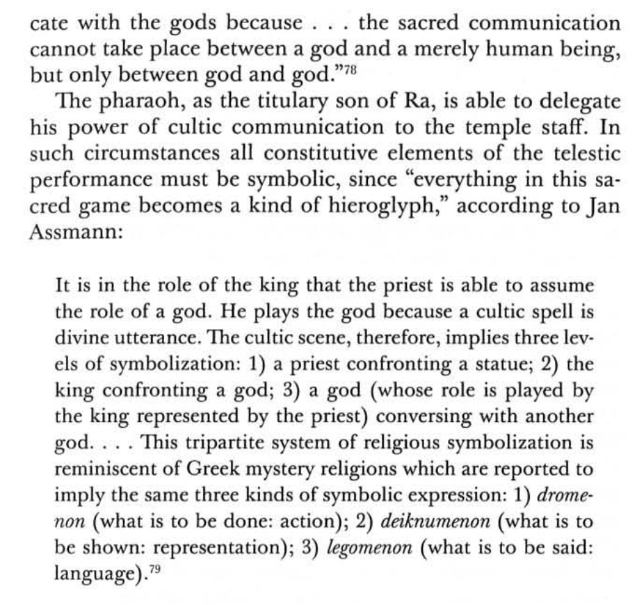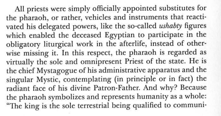 The Catholic Church is an institution obsessed with ritual and symbolism. It stands to reason that high ranking members would be drawn to such things. Whenever I try and explain what I mean when I speak of ritualistic psychodrama or mass ritual, I bring up a passage from Algis Uždavinys’ book Orpheus and the Roots of Platonism. In this excerpt, he describes how in ancient Egypt the Pharonic priesthood communicated with the divine in cultic ritual.