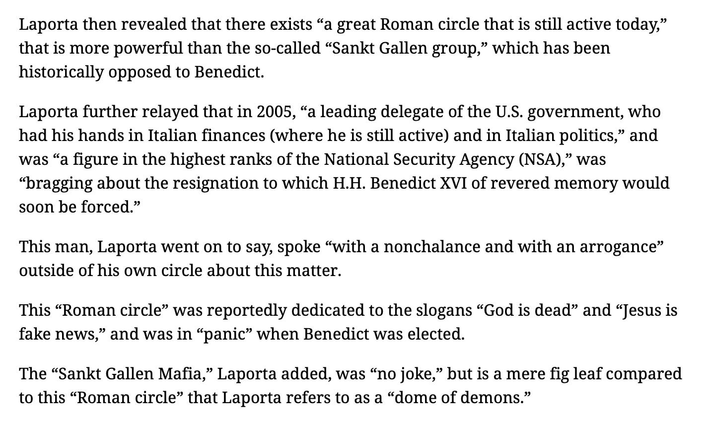 In the last article, we advanced the thesis that Jago’s benefactors picked the young man to play a specific artistic role. To advance certain themes and symbols. I hypothesized that whoever these individuals were, they played a part in the intimidation and coercion of Pope Benedict XVI, and that they had ties to clerical masonry. Anyone who has been following my work knows this is not far-fetched. As the reputable Italian Brigadier General Laporta stated: