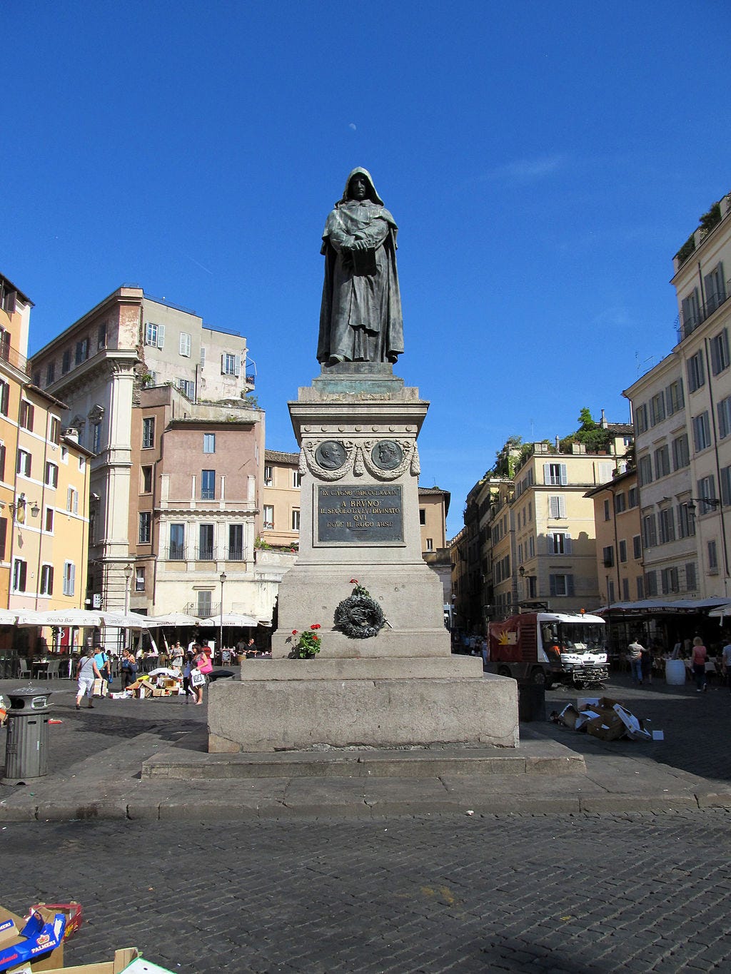 This statue was erected in the late 19th century to honor Giordano Bruno. Bruno was not a mason, but he is claimed by Masons as a hero, and Bruno was burned by the church as a heretic. Bruno was a genius, a man I personally admire, and a man who would have despised many aspects of the modern Masonic project. But the erection of this statue was explicitly Masonic.