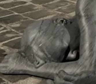 Almost two years have passed since I first published my article on the artist Jago and the bizarre matrix of symbols that haunt his oeuvre like ghosts. And as anyone who has seen Jago’s work can attest— these ghosts are a bit lacking in taste. Jago’s talent as an artist is so paltry, his statues so kitsch, that the aesthetic value of his work is even more offensive than it is sacrilegious. The concerted effort by the media and the church to paint the sculptor as a new Michelangelo is a sin against art and an insult to anyone with eyes. In Mozambique, there is a folk belief that bald men have gold in their heads, but one look at Jago’s Pieta proves that his skull is full of nothing but pyrite— fools gold with hints of sulfur.