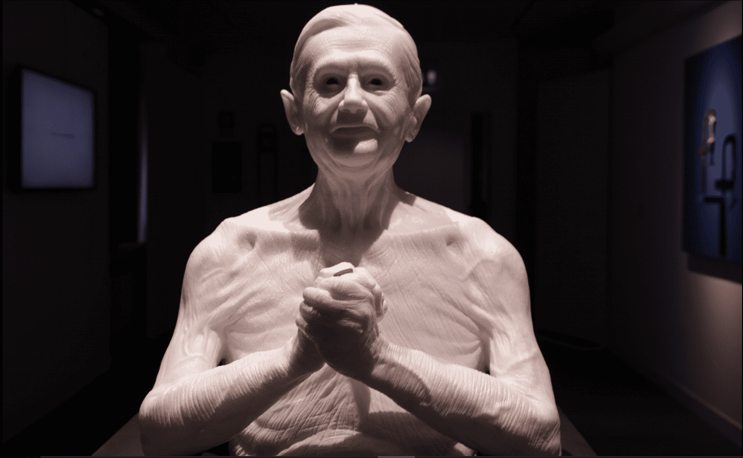 Jacopo Cardillo’s (born 1987) meteoric rise from a nobody to a darling of the art world occurred practically overnight. (There is a thief pun to be made somewhere). The earliest listed work of his is Ego laurentius which was produced in 2007. The narrative usually makes it out as if in 2009 he exploded in popularity with his bust of Pope Benedict XVI. This bust attracts the attention of the Vatican and the art world, and it begins his long relationship with the Church as his patron. Then, as the story goes, in 2013 Jago had the “genius” idea to alter the bust after Benedict XVI resigned. He strips the statue of its vestments, the symbols of papal authority, leaving wrinkled and veristic flesh underneath. Two elements are noteworthy. He adds the missing eyes to the bust, and he does not remove the Fisherman’s Ring. The altered work was titled Habemus Hominem. From this point, his career takes off, both with the Church and the art world at large.