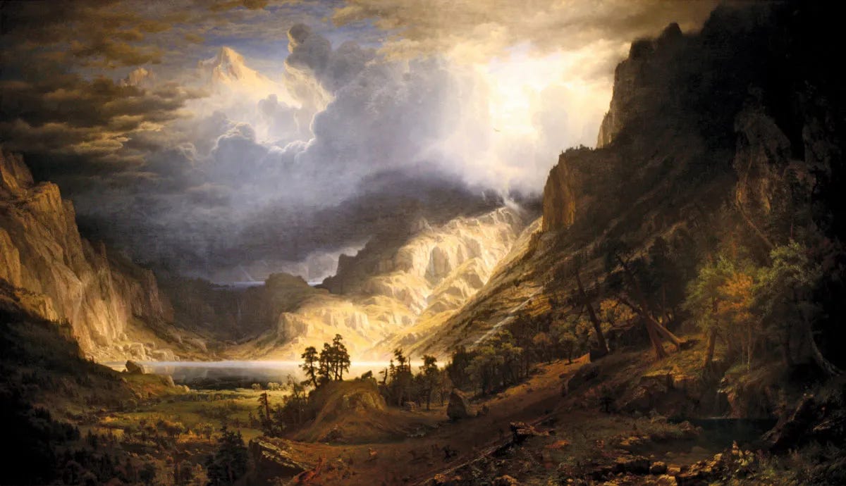 Emerson was the only poet who knew how to properly praise the American wilderness, to bejewel and enthrone the sapphire mountain ridges and smaragdine woodland. That rugged nature which should be the locus of all American art. It is why the greatest paintings ever produced by American artists were that of the Hudson River School, the American Sublime. It is the grandeur of the American wilderness in which the American finds his reflection, his self portrait, the contours of his ambition— in which he dreams himself a body big enough to hold his soul. In the paintings of Bierstadt and Church, where Olympian cliffs and crystalline lakes are set aflame by a preternatural sunburst, as America bleeds into Avalon, and Avalon into America. The axial node in which the United States evaporates into immateriality, leaving the mundane and entering the eternity of myth. Here lies Arcadia and Jerusalem. It is her hymn that must be sung. And so is it any wonder, that by some cosmic sympathy, Bellini and Titians Feast of the Gods lie but a few feet from the Hudson River School Canon in the National Gallery? And the contorted flesh of Grunewalds small Crucifixion but a floor above. Emerson declared that Man is a God in Ruins, but it is in America’s bosom that he is destined to reassemble himself—or at least— this is my hope and my prayer.