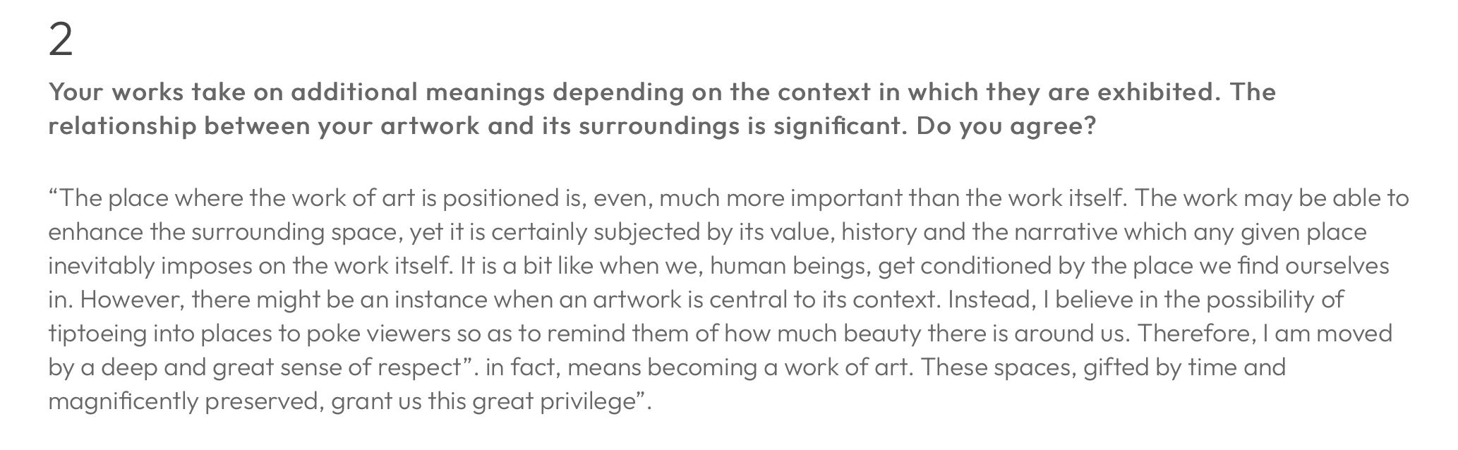 “The place where the work of art is positioned is, even, much more important than the work itself.”
