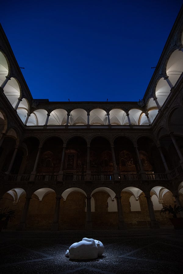 From February 17th to June 3rd 2024, the statue which was once in the al Haniya desert was moved to the famous Palazzo Reale in Palermo.