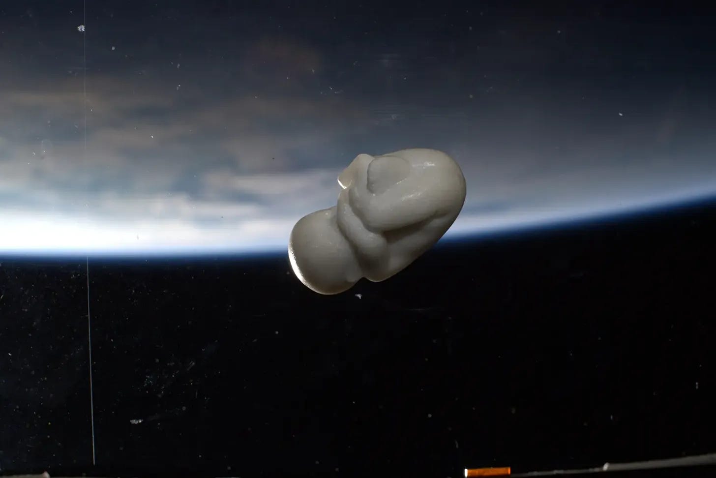 Almost a year before the aforementioned slip of the tongue, on July 20, 2019, Luca Parmitano had left earth and arrived on the International Space Station for his second mission into space. A symbolic day for sure, as it was the 50th anniversary of the Apollo 11 mission. He would return on February 6, 2020. In his possession during the trip was a peculiar item. A historic item. The first marble sculpture to be sent to the International Space Station.
